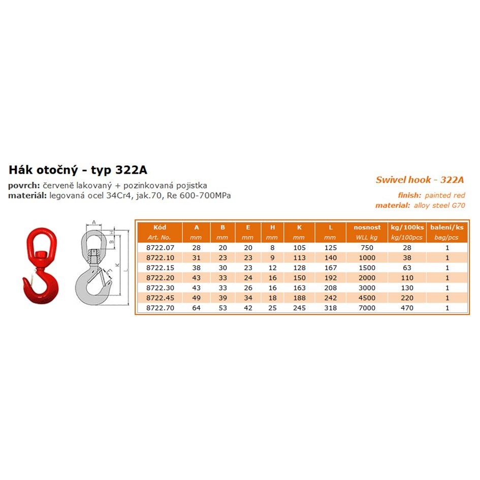 hák otočný s okem 322A 4.5t 8722-45 -11